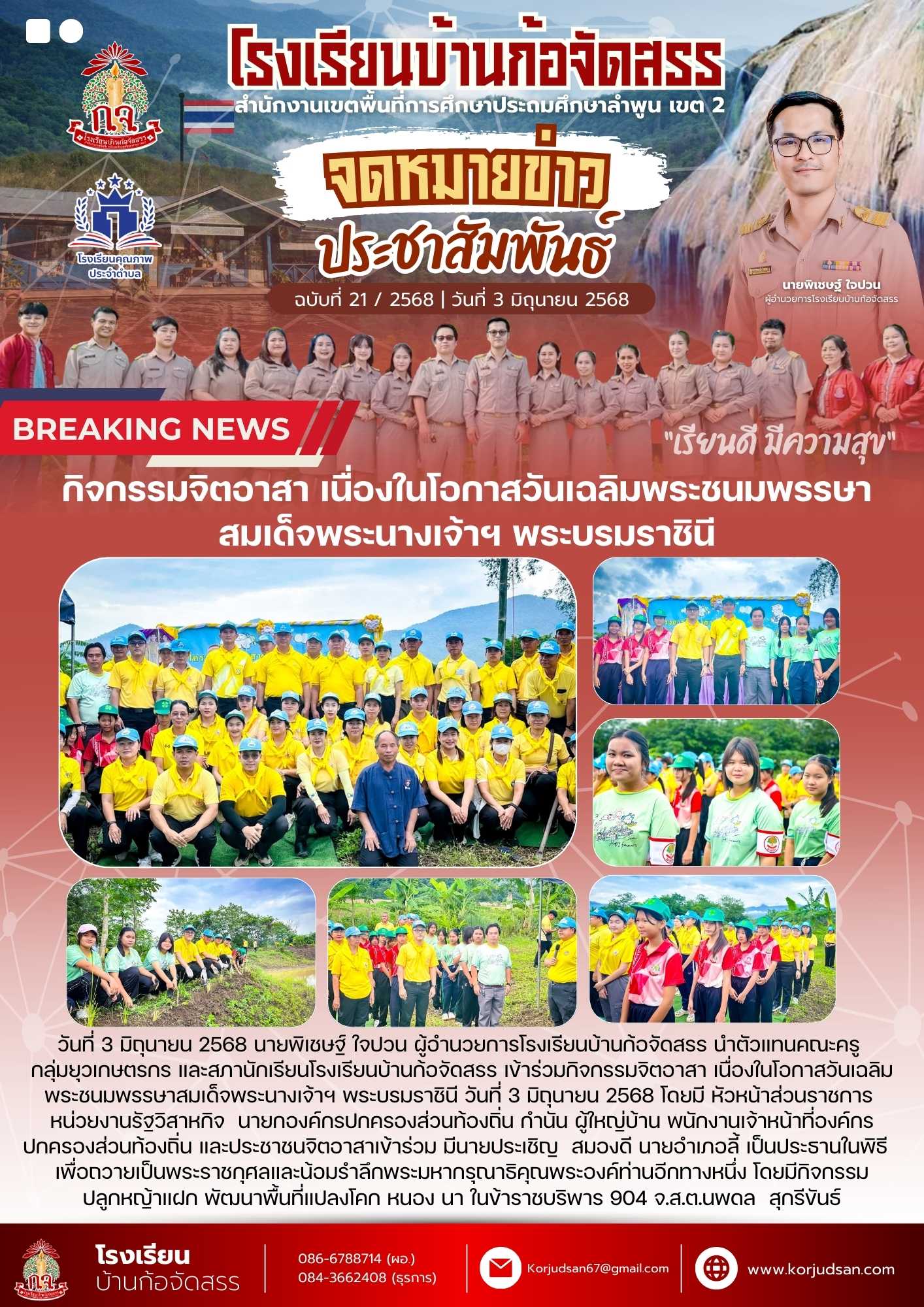 จดหมายข่าวประชาสัมพันธ์โรงเรียนบ้านก้อจัดสรร #ฉบับที่21 ปีการศึกษา 2568 | 3 มิถุนายน 2568