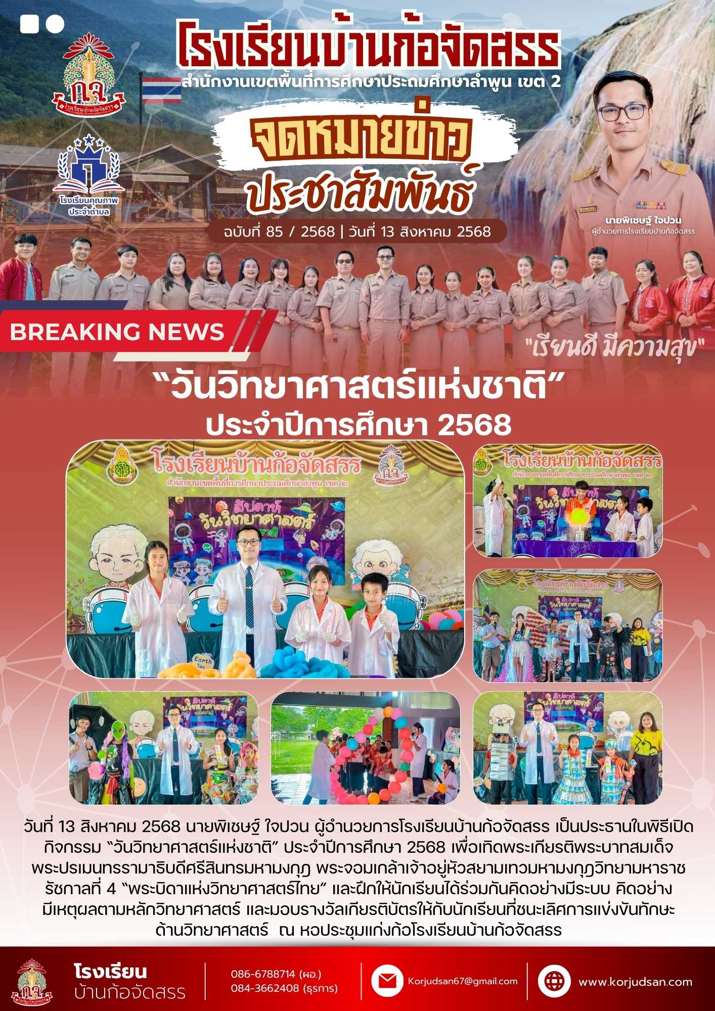 จดหมายข่าวประชาสัมพันธ์โรงเรียนบ้านก้อจัดสรร #ฉบับที่85 ปีการศึกษา 2568 | 13 สิงหาคม 2568