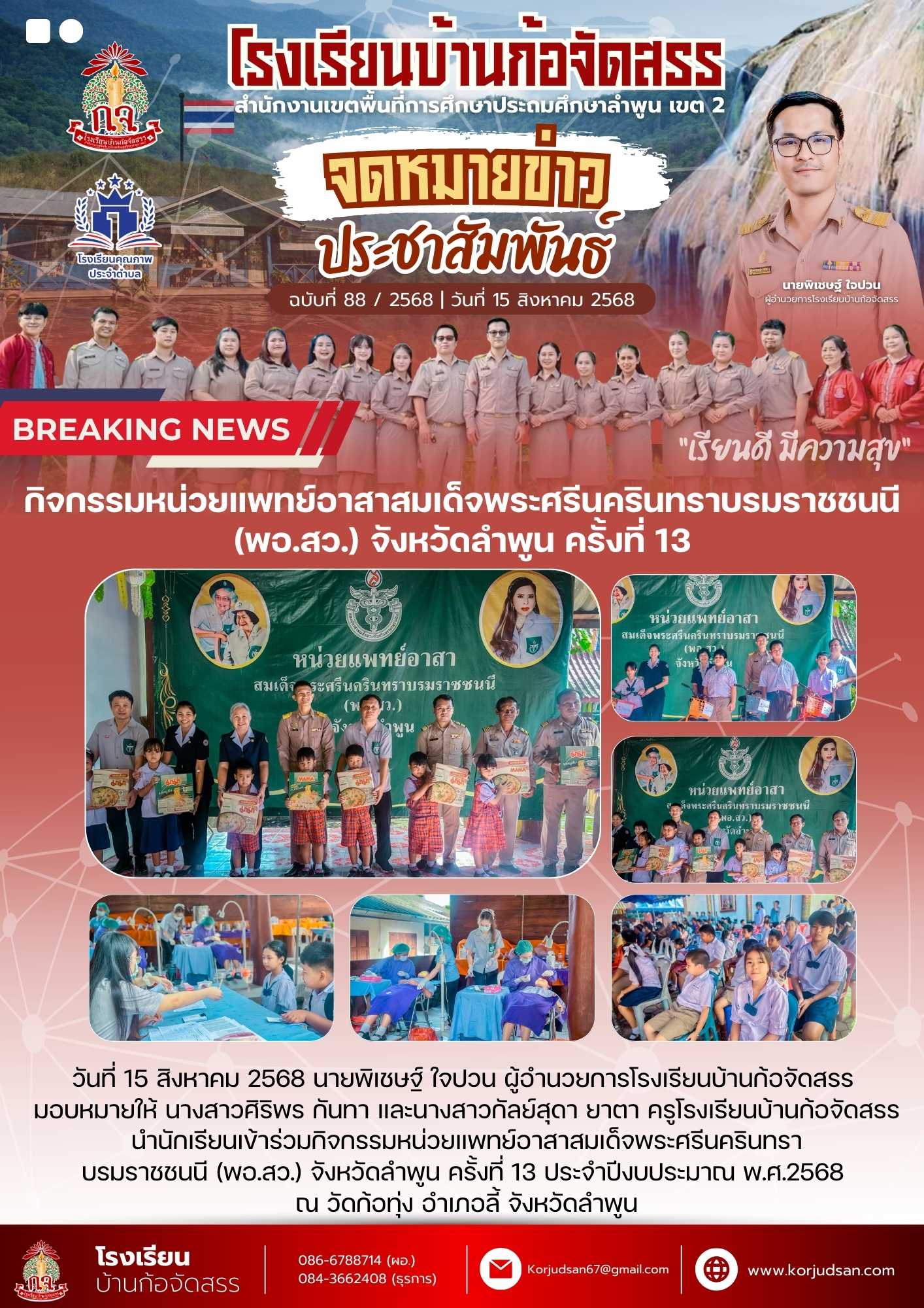 จดหมายข่าวประชาสัมพันธ์โรงเรียนบ้านก้อจัดสรร #ฉบับที่88 ปีการศึกษา 2568 | 15 สิงหาคม 2568