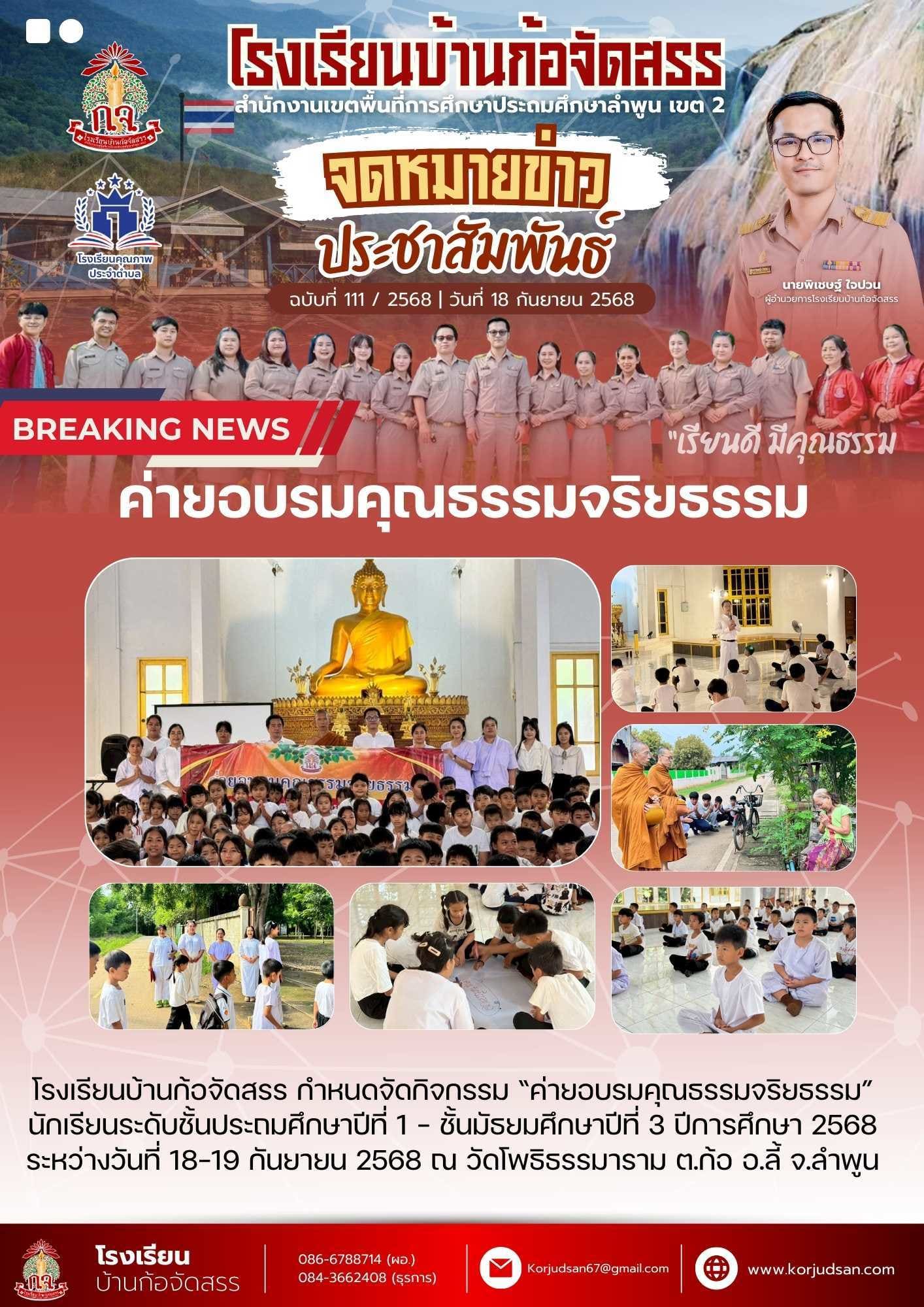 จดหมายข่าวประชาสัมพันธ์โรงเรียนบ้านก้อจัดสรร #ฉบับที่111 ปีการศึกษา 2568 | 18 กันยายน 2568