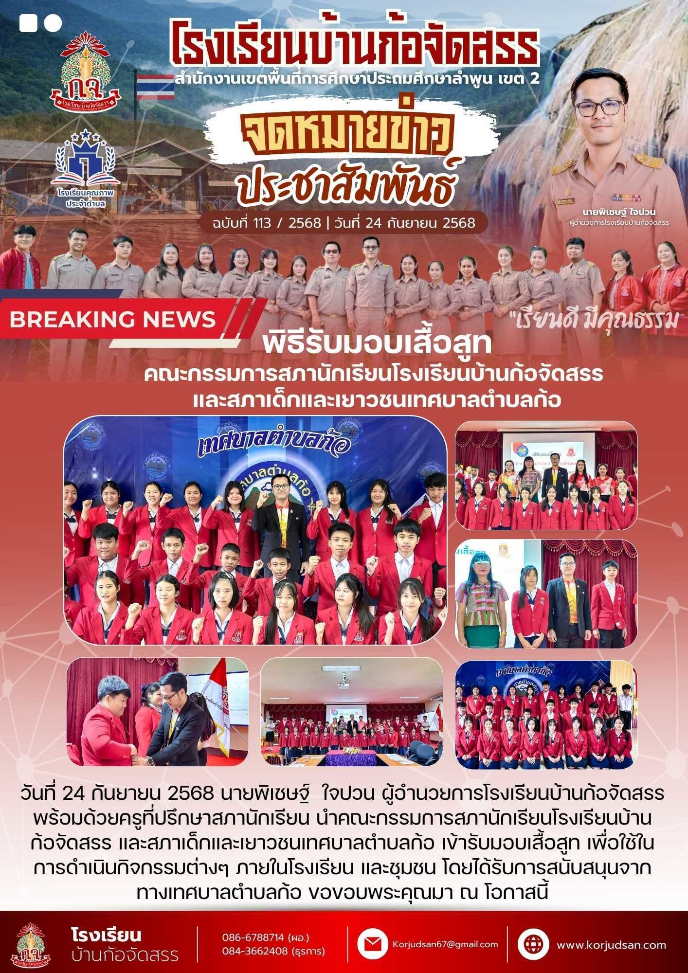 จดหมายข่าวประชาสัมพันธ์โรงเรียนบ้านก้อจัดสรร #ฉบับที่113 ปีการศึกษา 2568 | 24 กันยายน 2568
