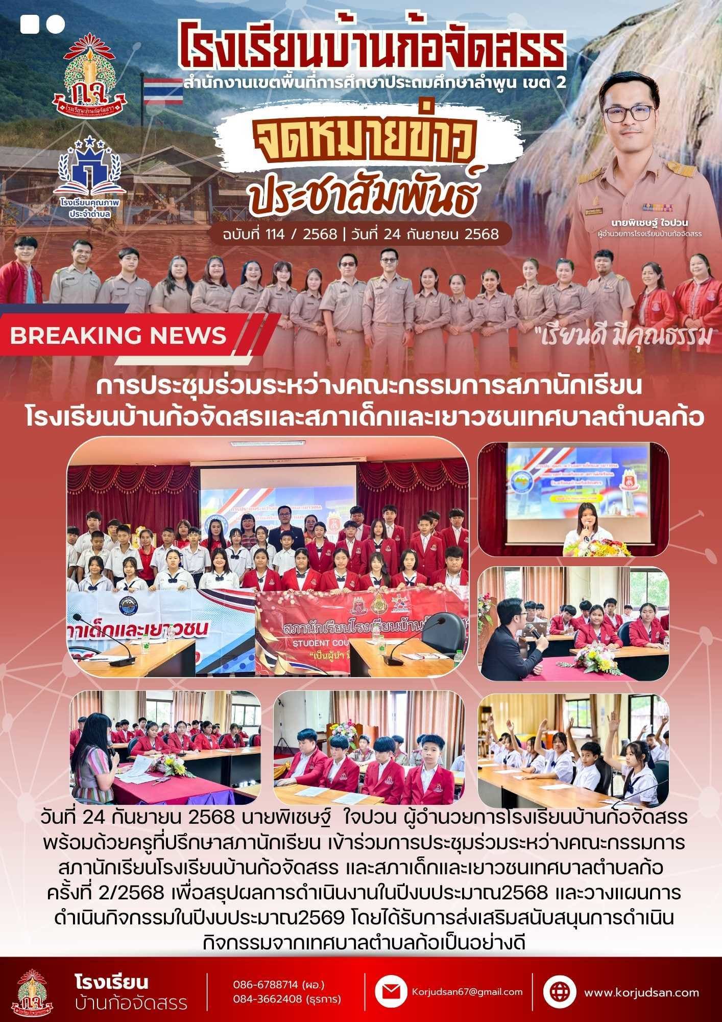 จดหมายข่าวประชาสัมพันธ์โรงเรียนบ้านก้อจัดสรร #ฉบับที่114 ปีการศึกษา 2568 | 24 กันยายน 2568