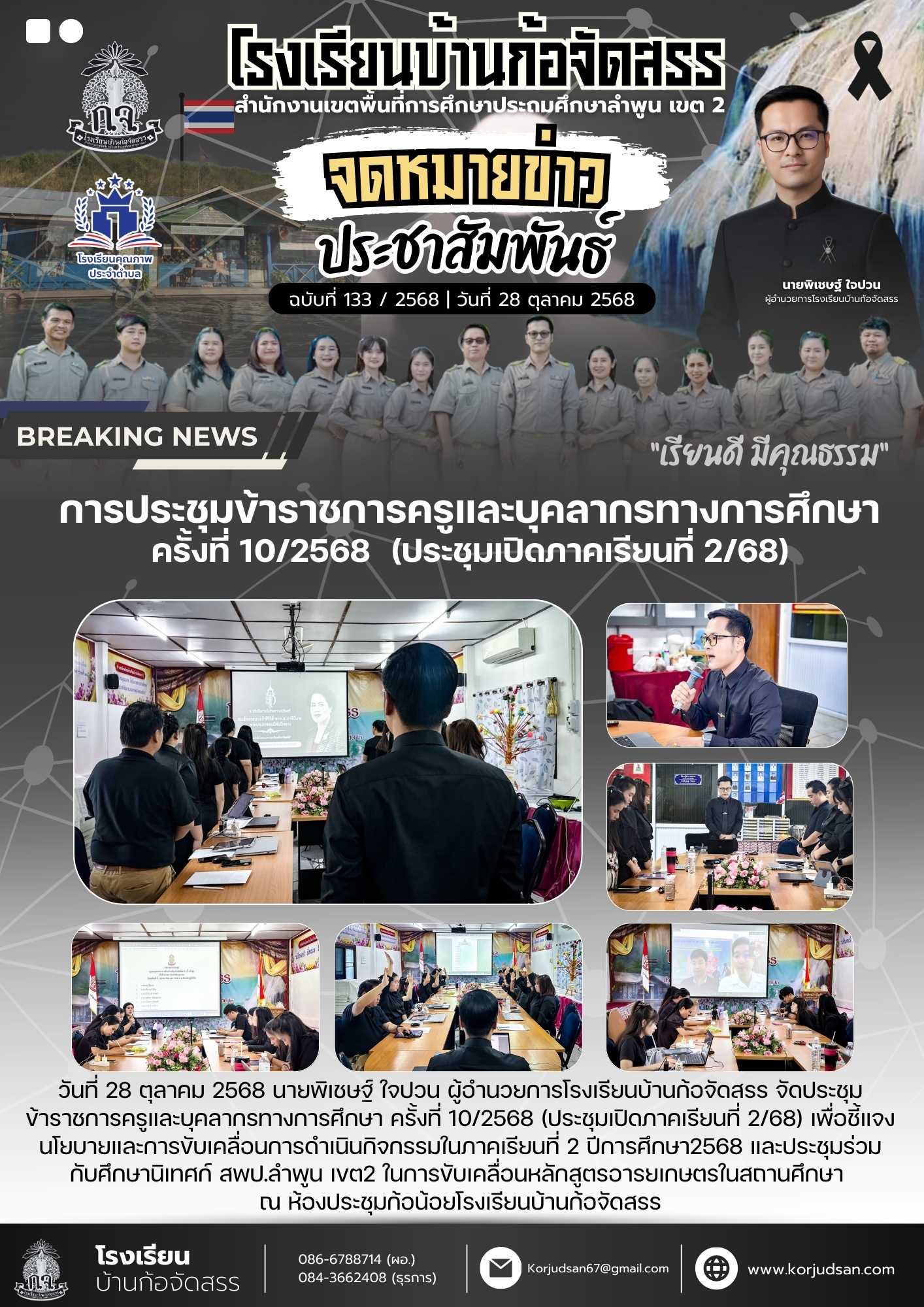 จดหมายข่าวประชาสัมพันธ์โรงเรียนบ้านก้อจัดสรร #ฉบับที่133 ปีการศึกษา 2568 | 28 ตุลาคม 2568